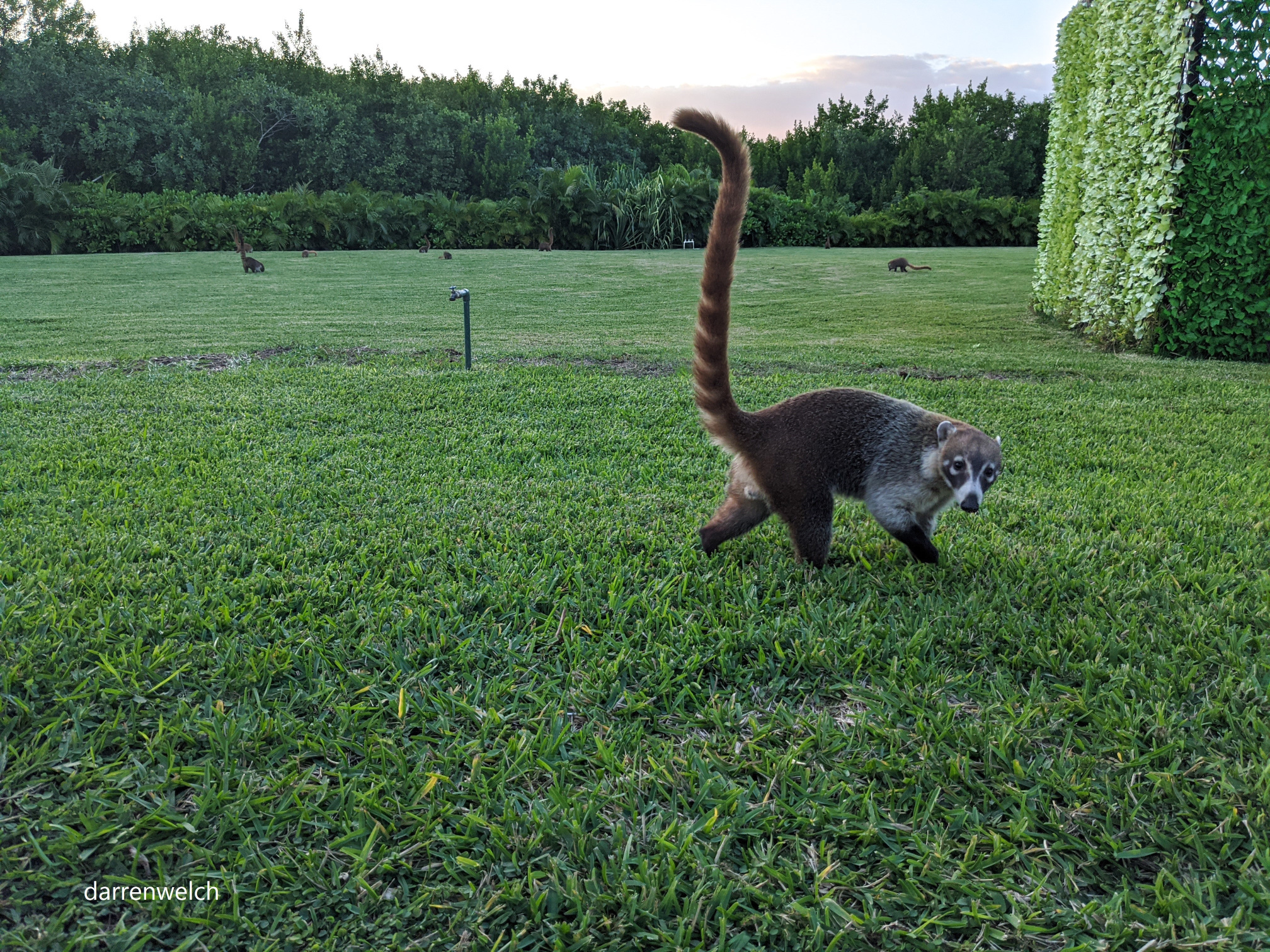 Coatis aka Coatimundis are native to Mexico and South America. The Hotel (Blue Bay Grand Esmeralda) that we stayed in is surrounded by jungle and has lots of inhabitants including lots of Coatis wandering around.