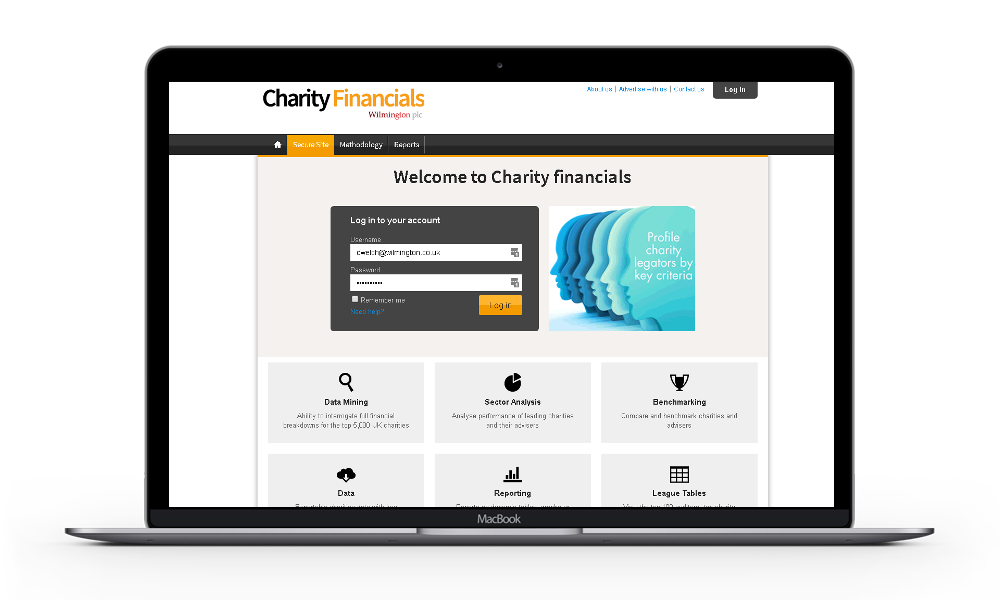 Subscription based interactive online tool containing the latest available financial information on 163k charities.