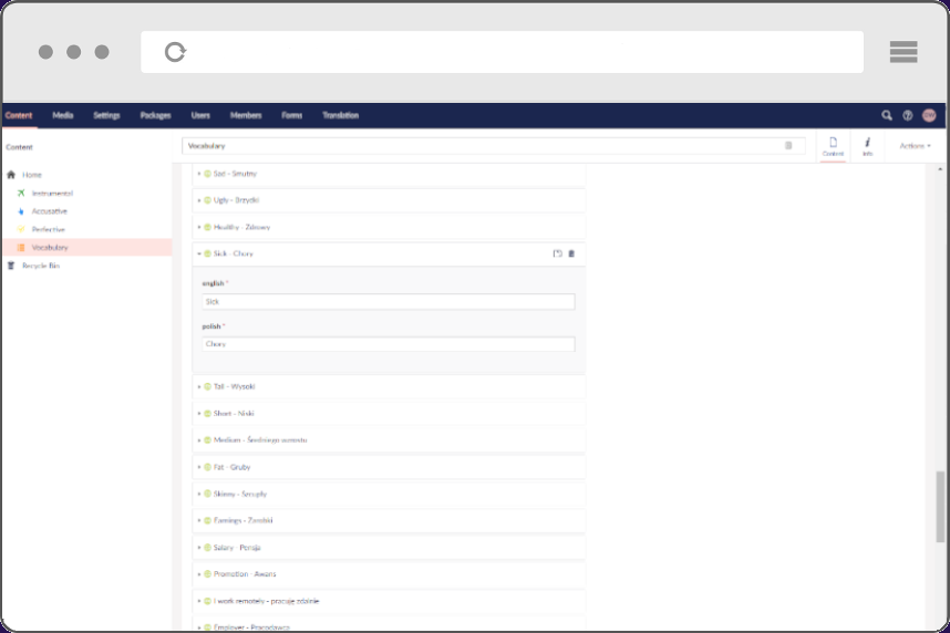 It's a collection of tools to assist with learning Polish. Thanks to Umbraco's Language variants, I could actually create multiple sites for different languages easily.